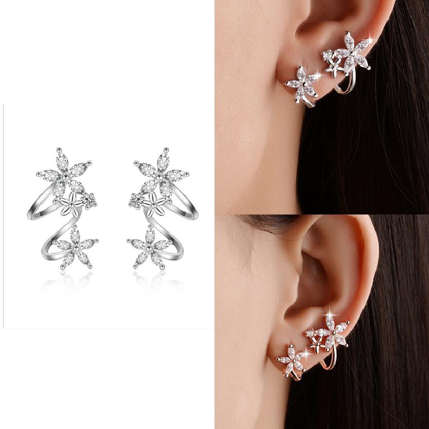 Cod Zirkon Anting Wanita Korea Fashion Bunga Melengkung Klip