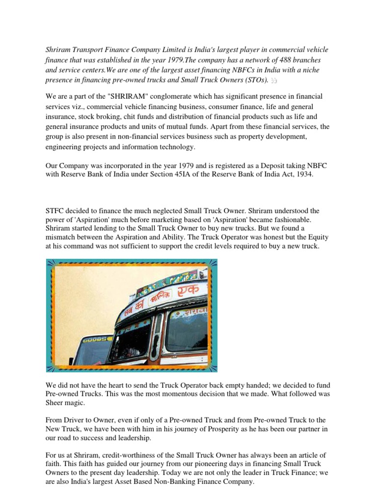 Shriram Transport Finance Company Ltd Tb Road Business Loans In